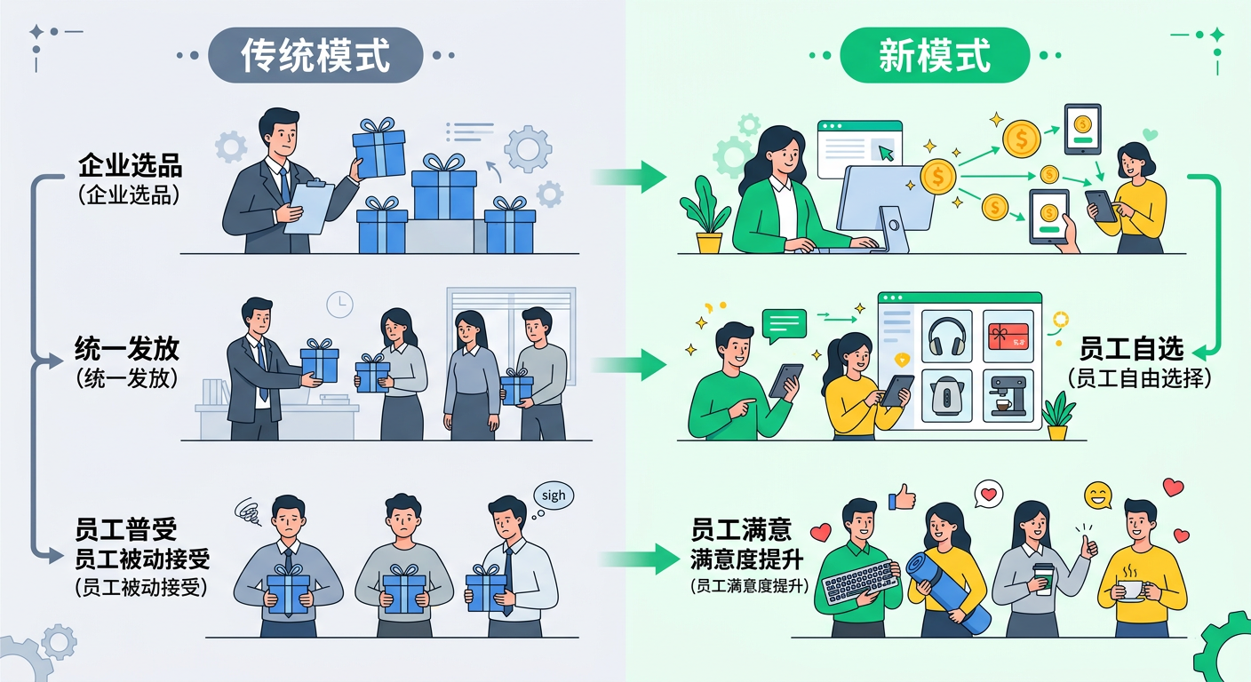 不再纠结“发什么”,而是发福利额度或积分,让员工自己兑换。